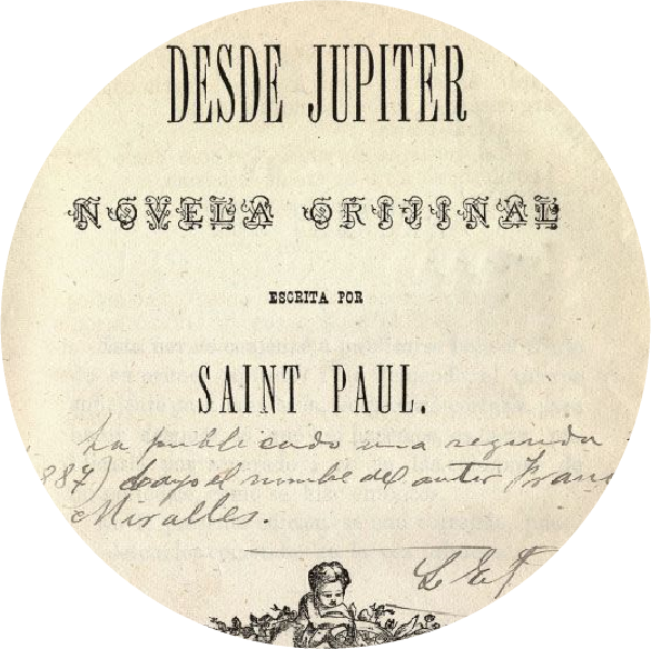 Título: Desde Júpiter. Curioso viaje de un santiaguino magnetizado.Segunda edición: 1886, Imprenta Cervantes. 333 pp.