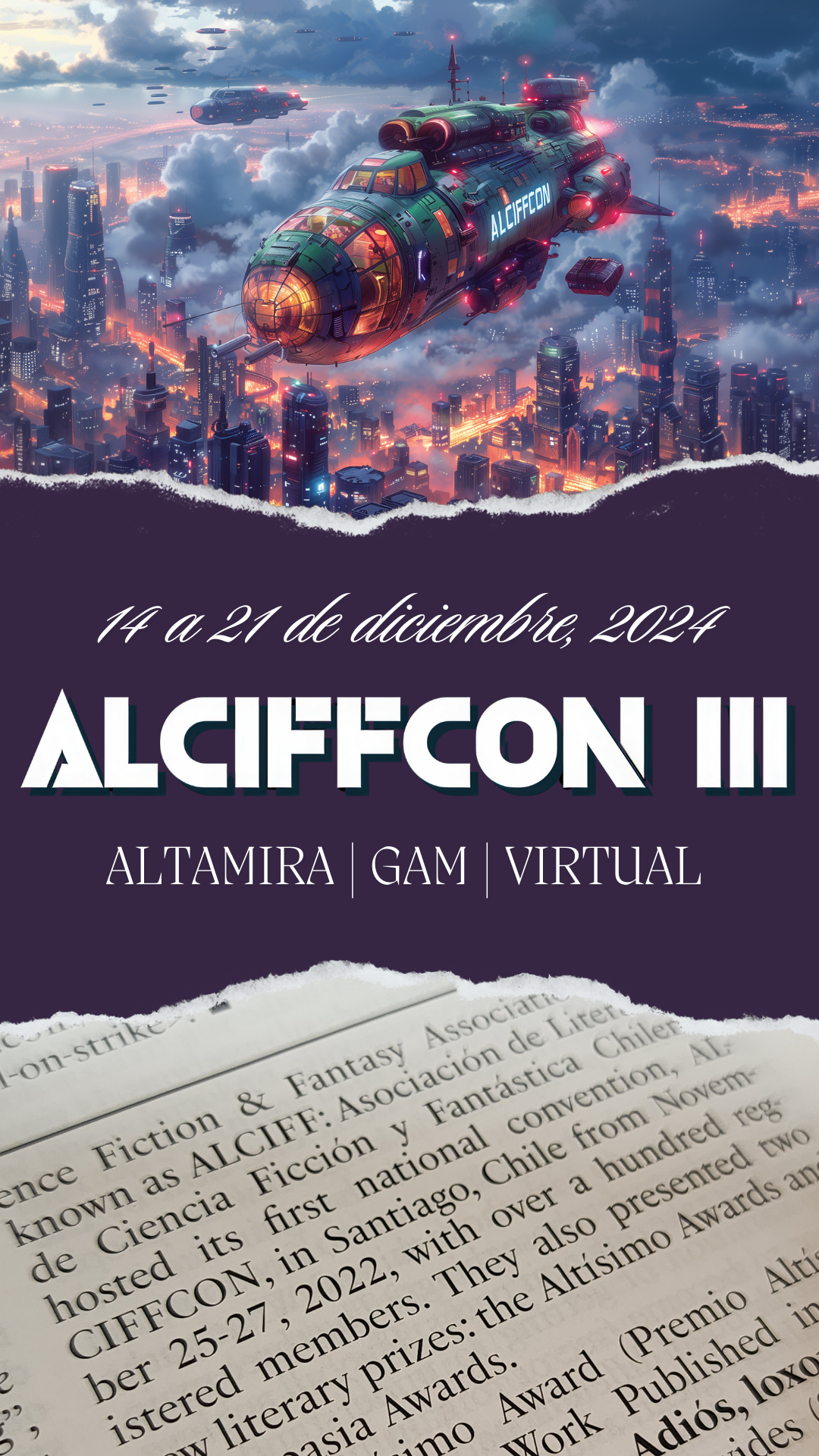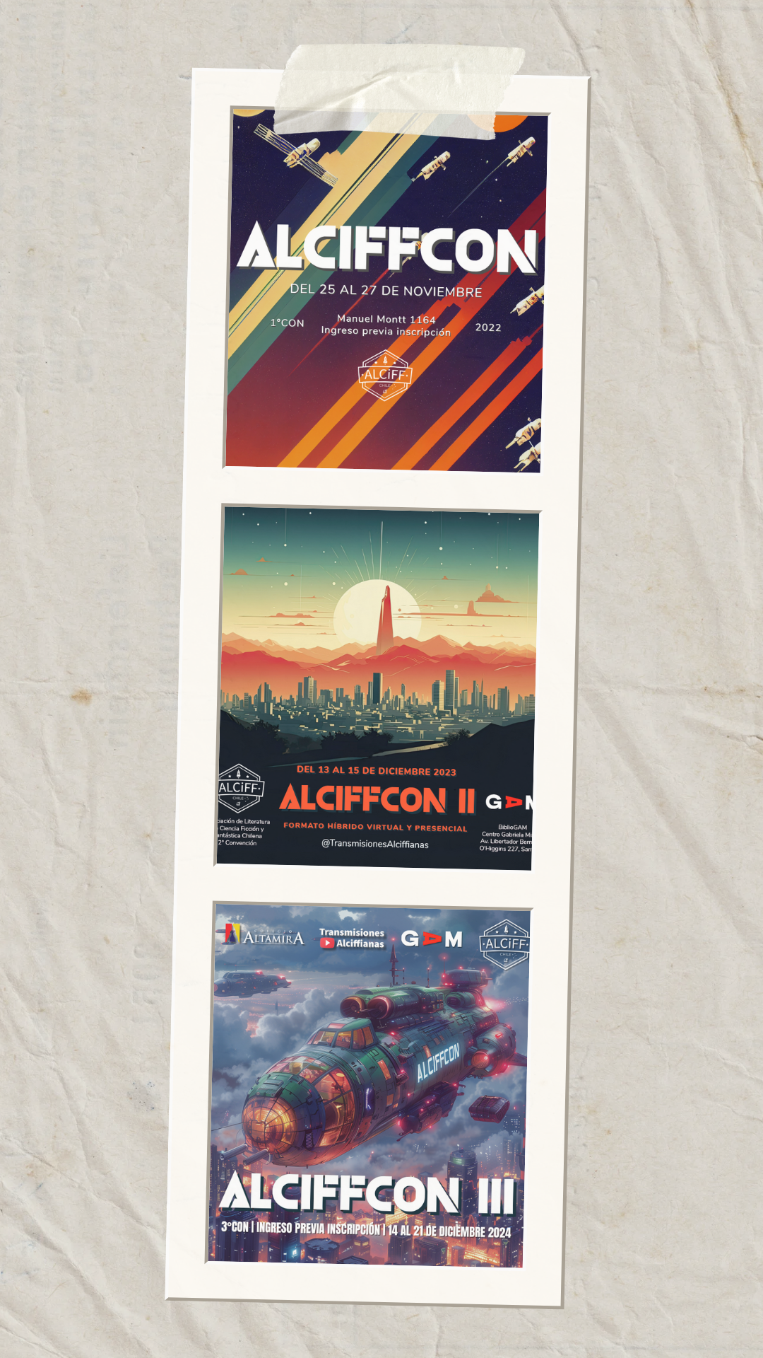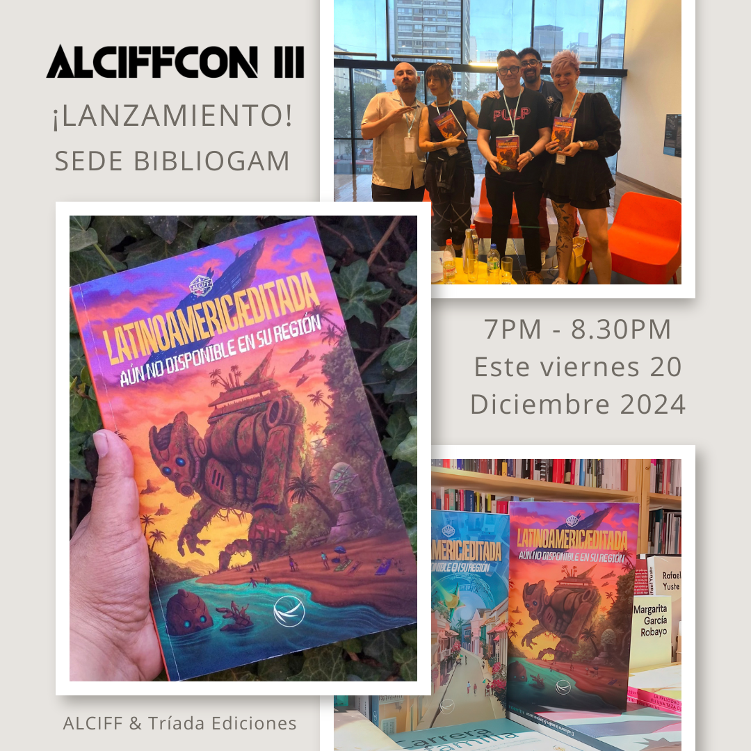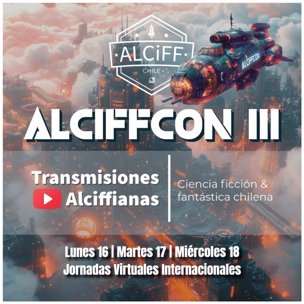 ALCIFFCON constituye nuestro emblemático encuentro anual, forjador de tradición, cultura, comunidad y, a su vez, de un importante canon literario interseccional a través de las premiaciones específicas al género fantástico que realizamos, unas con jurado y otras con voto libre y popular —premios Aspasia y Altísimo respectivamente—, siempre con énfasis en la ciencia ficción en su amplia acepción. Esta vez celebramos nuestra tercera edición, especial por su extensión e intensidad, así como por marcar un hito para esta forma literaria en Chile. Contamos con tres sedes, en alusión a ser esta la tercera: partimos por el Colegio Altamira de Peñalolén, donde llevamos a cabo el Premio al Talento Joven (para estudiantes), el mencionado premio Aspasia; siguiendo luego por jornadas virtuales desde Chile para el mundo y viceversa; para terminar con las jornadas emblemáticas en el Centro GAM, nuestro cierre, que culmina con la entrega de los galardones del Retropremio y Premio Altísimo, y donde se concentran nuestros invitados de honor internacionales, amistades destacadas nacionales y el lanzamiento oficial de un nuevo libro alciffiano sin precedentes, LATINOAMÉRICÆDITADA: Aún no disponible en su región, que reúne nuevamente voces latinoamericanas como nunca antes. Así, integramos lo mejor de lo aprendido en los años previos, manteniendo un formato híbrido, convergiendo las experiencias presenciales y virtuales de nuestros integrantes a través la zona metropolitana. Queremos valorar e integrar, sabiendo los desafíos, a toda esta cada-vez-más-enorme comunidad. ¡Y que siga creciendo y sean muchas más ALCIFFCONES por celebrar!