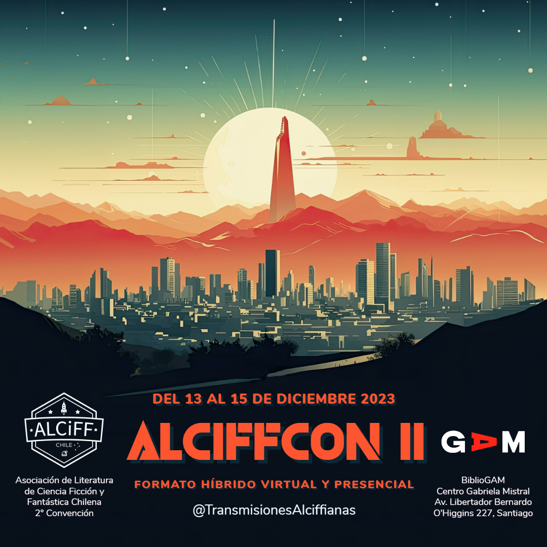La convención oficial de la Asociación de Literatura de Ciencia Ficción y Fantástica Chilena, ALCIFF: una celebración anual desde y para el fandom, sin fronteras hacia el mundo y sus tiempos siempre cambiantes. En esta sección puedes seleccionar los afiches de las ediciones realizadas o en curso para conocer más detalles de cada uno de estos encuentros, que reúnen autores, editoriales, al mundo académico y al mundo lector, integrantes alciffiestes de gentilicios inagotables y amistades afines, con las emblemáticas entregas de los premios Altísimo y Aspasia. ¿Acta non verba? Incluso más: comunidad y colaboración.